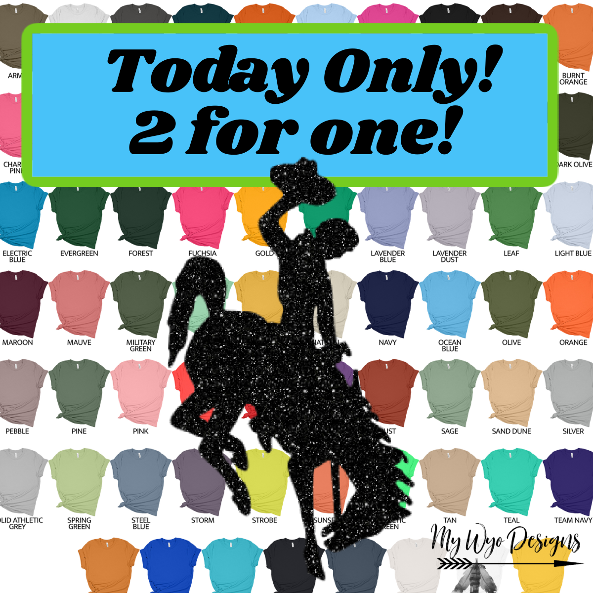 Two for one! Put both in your cart and the discount will reflect your FREE tee. You can pick your sizes.