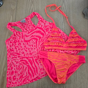 Justice Hot Pink & Orange Ruffle Bikini & overlay ~ Girls size 14