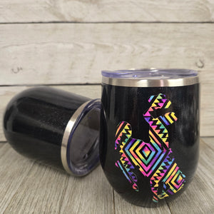 Bright Aztec Black Glitter~ Bucking Horse & Rider®️ Wine Tumbler