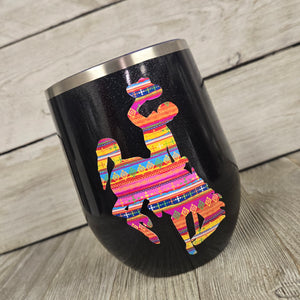 Bright Stripe Serape' & Black Glitter~ Bucking Horse & Rider®️ Wine Tumbler
