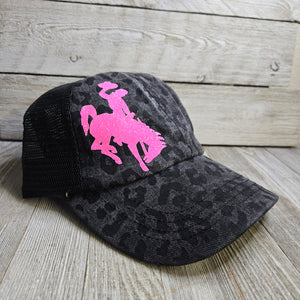 Black Leopard ~ Neon Pink Glitter ~Bucking horse & Rider®️ CC Criss-Cross Pony Cap