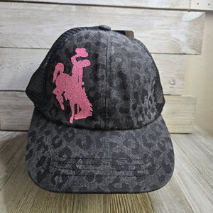 Black Leopard ~ Flamingo Pink Glitter ~Bucking horse & Rider®️ CC Criss-Cross Pony Cap