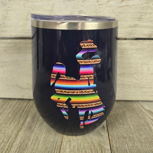Cheetah Bright & Navy Glitter~ Bucking Horse & Rider®️ Wine Tumbler