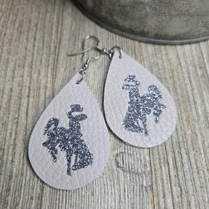 Bucking Horse & Rider®️ Leather Earrings~ Light Grey & Pewter Glitter