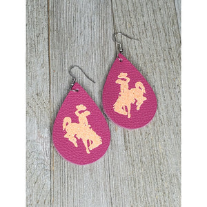 Steamboat Bucking Horse & Rider®️ Authentic Leather Earrings  Hot Pink/Neon Coral