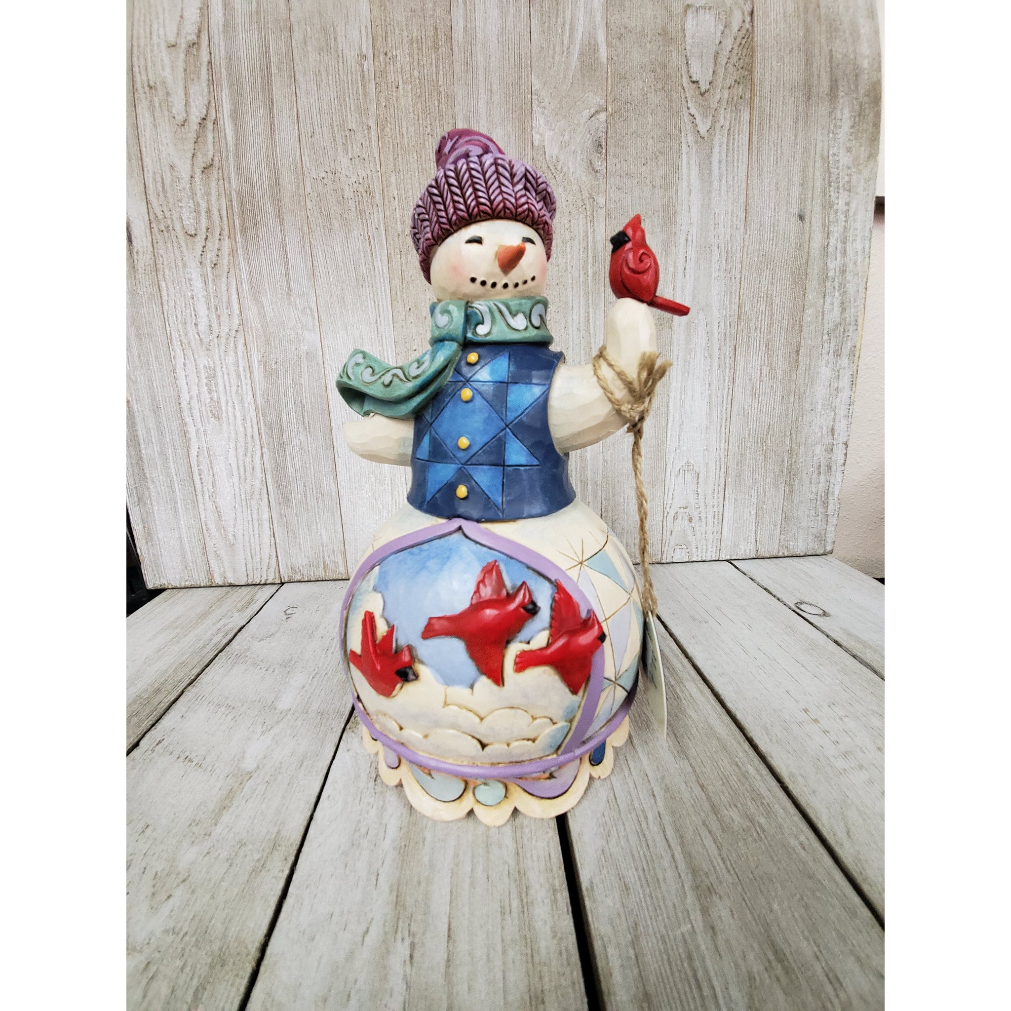 Jim Shore "Winter Cheer Happens Here" Snowman with red cardinal - My Wyo Designs