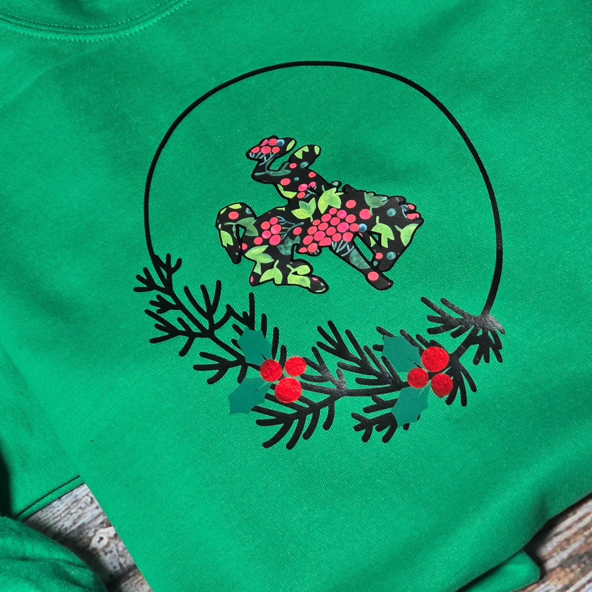 Holly Berries & Bucking Horse ~ Green Gildan Sweatshirt