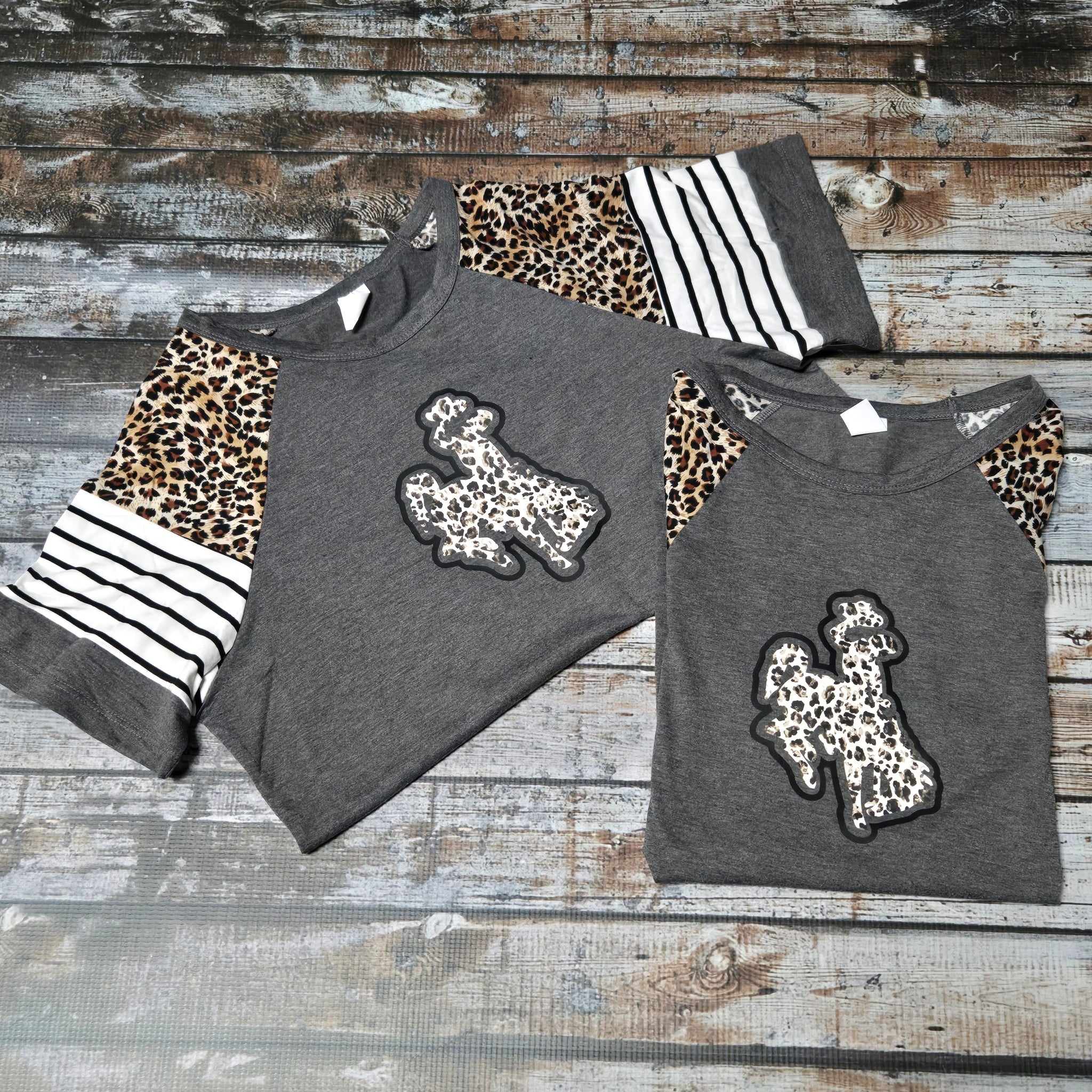 Cheetah ~Bucking Horse ~ Grey Raglan Sleeve Tee