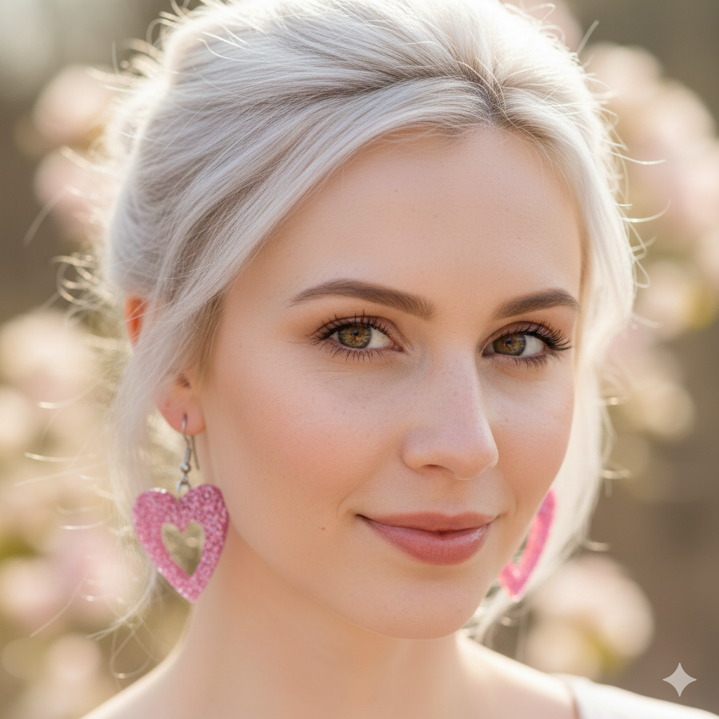 Pink Glitter Acrylic ~Heart cutout~ Earrings