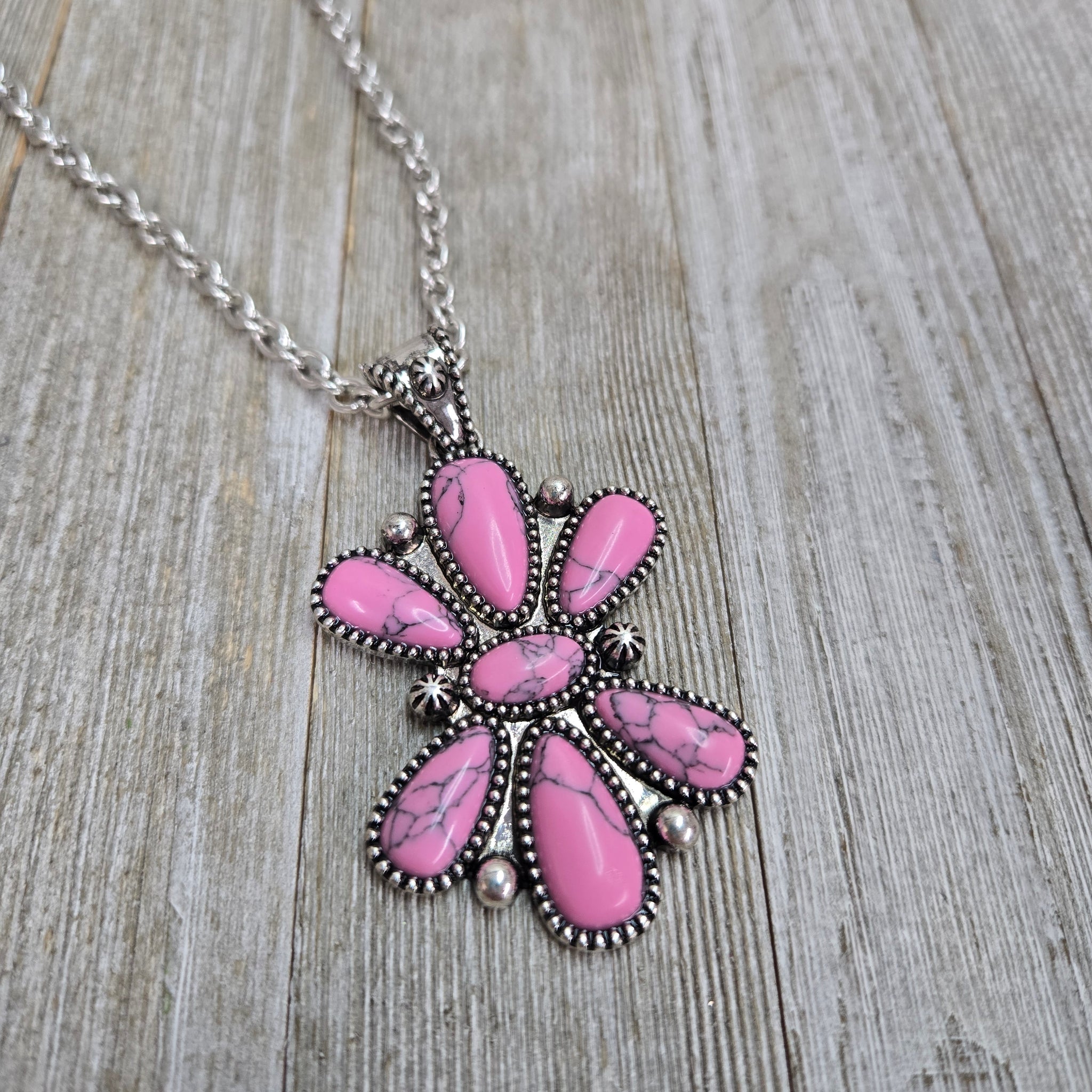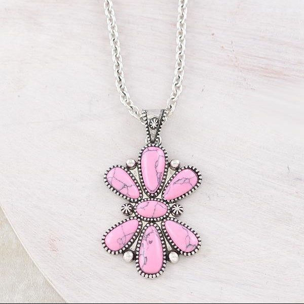 Pink Stone Half Floral Necklace