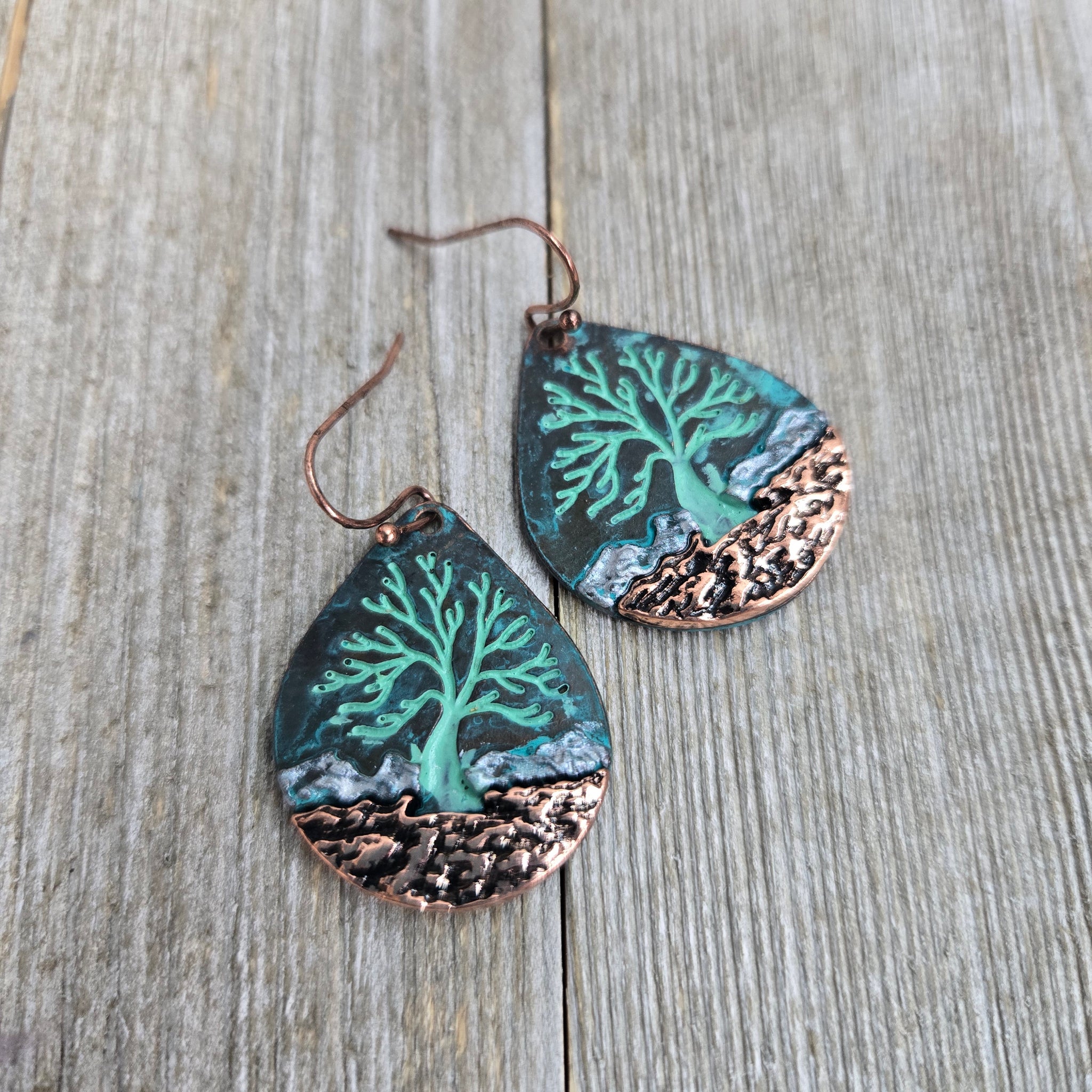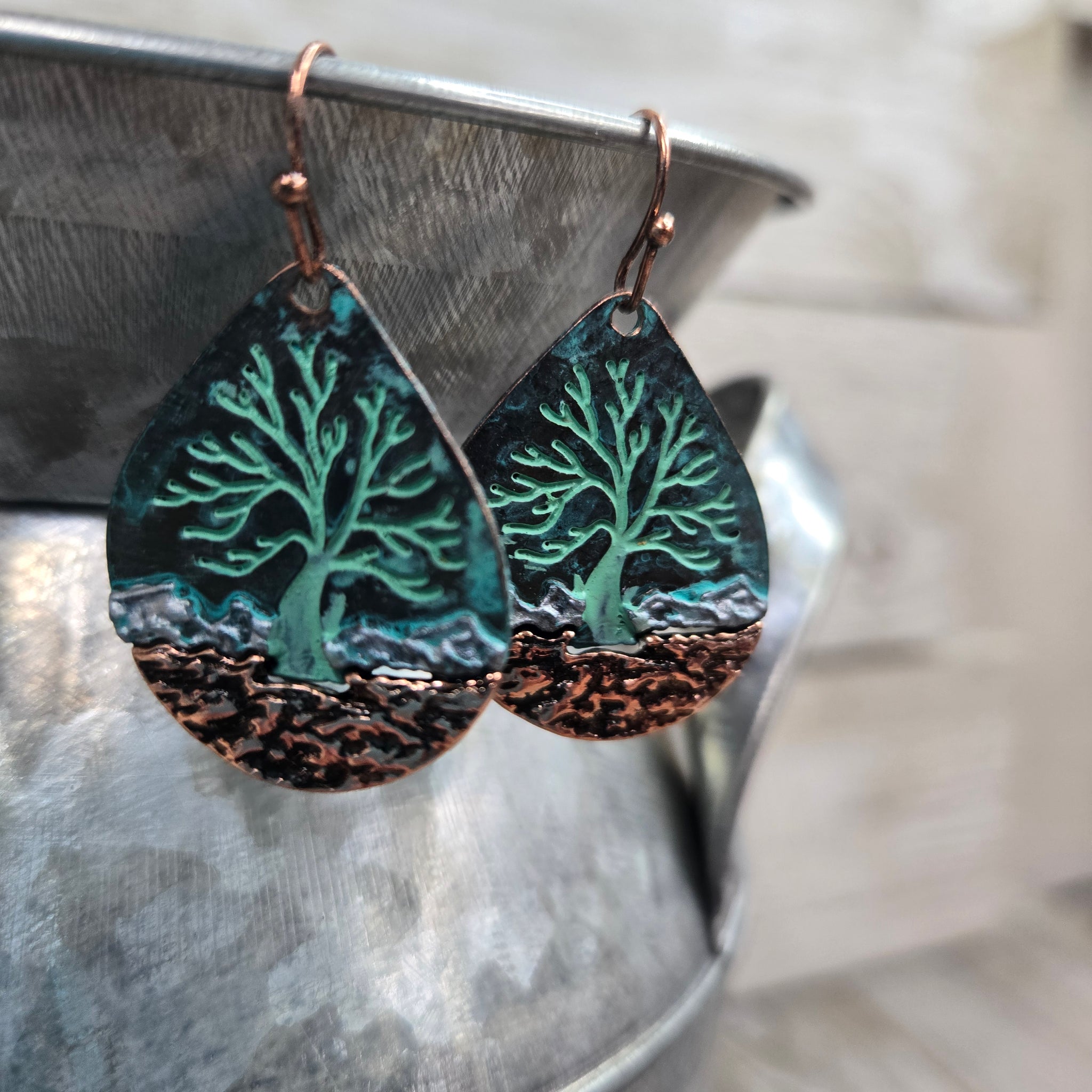 Tree in the Mountains~ Patina Teardrop Earrings
