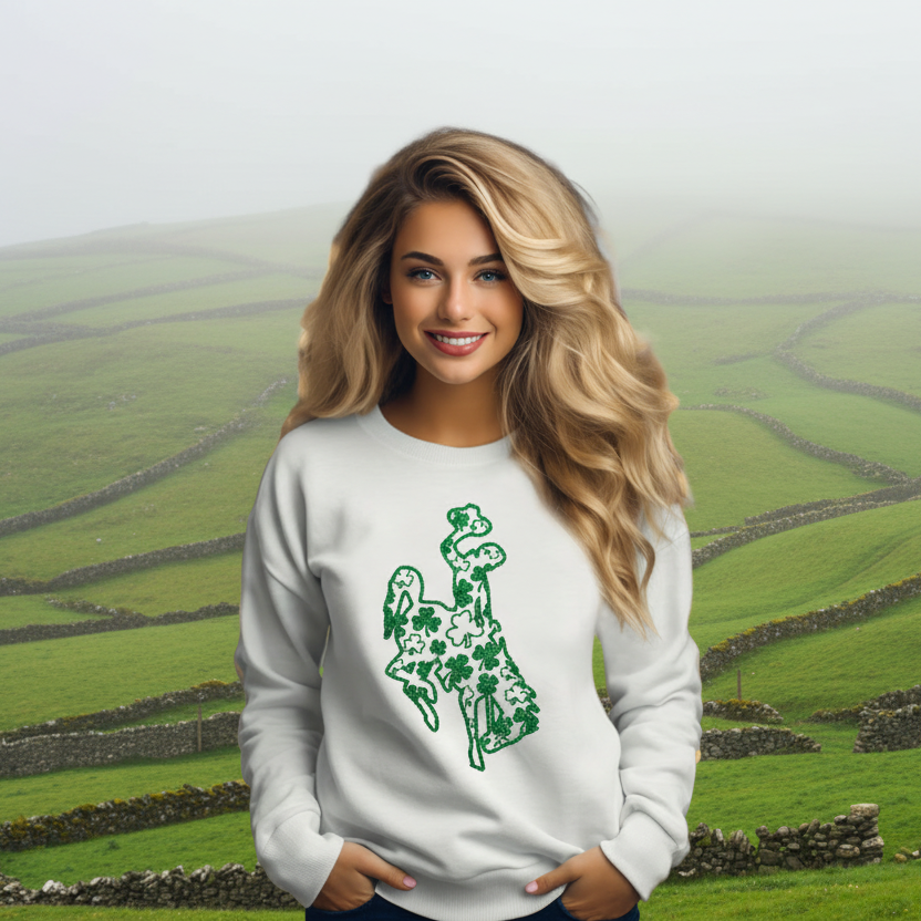 Jumbo Scattered Shamrocks ~ White Gildan Sweatshirt