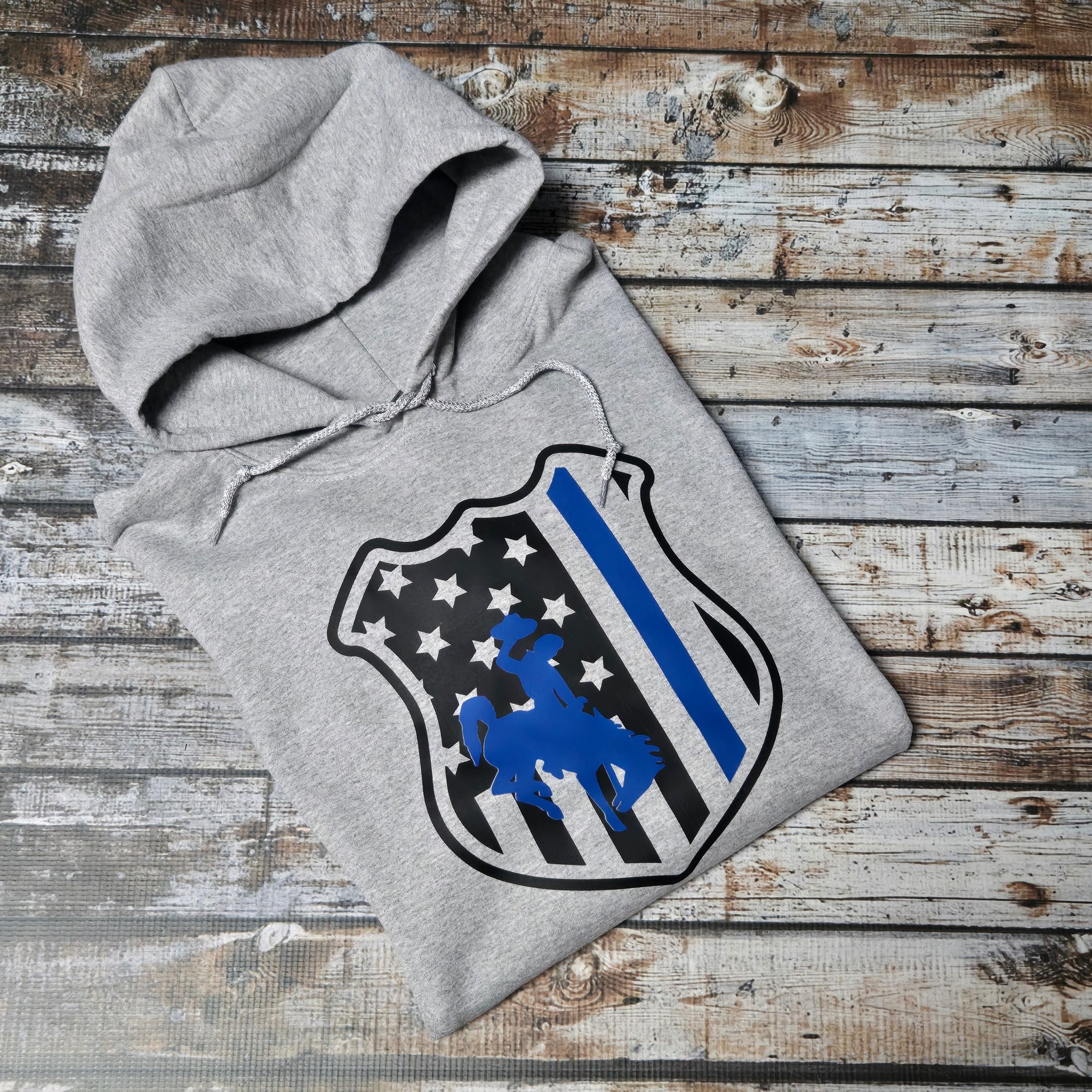 Back the Blue Steamboat & Shield ~ Royal Hoodie - My Wyo Designs