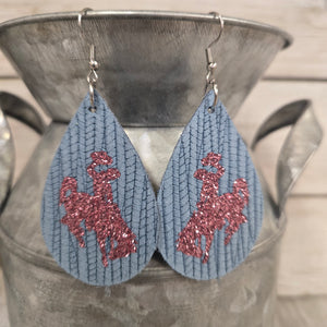 Bucking Horse & Rider®️ Palm Leather Earrings~ Dusty Blue/rose gold